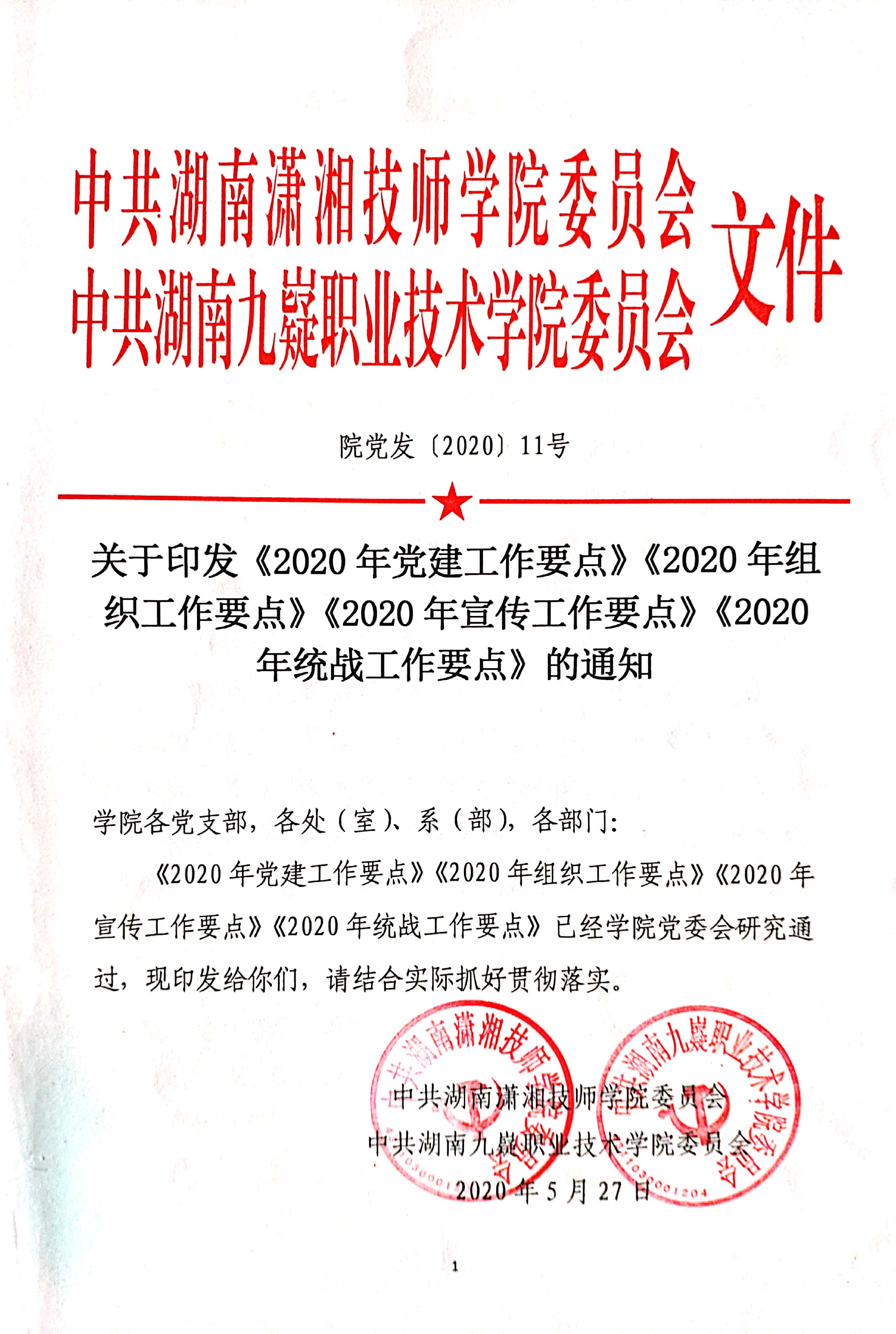 关于印发《2020年党建工作要点》《2020年组织工作要点》《2020年宣传工作要点》《2020年统战工作要点》的通知