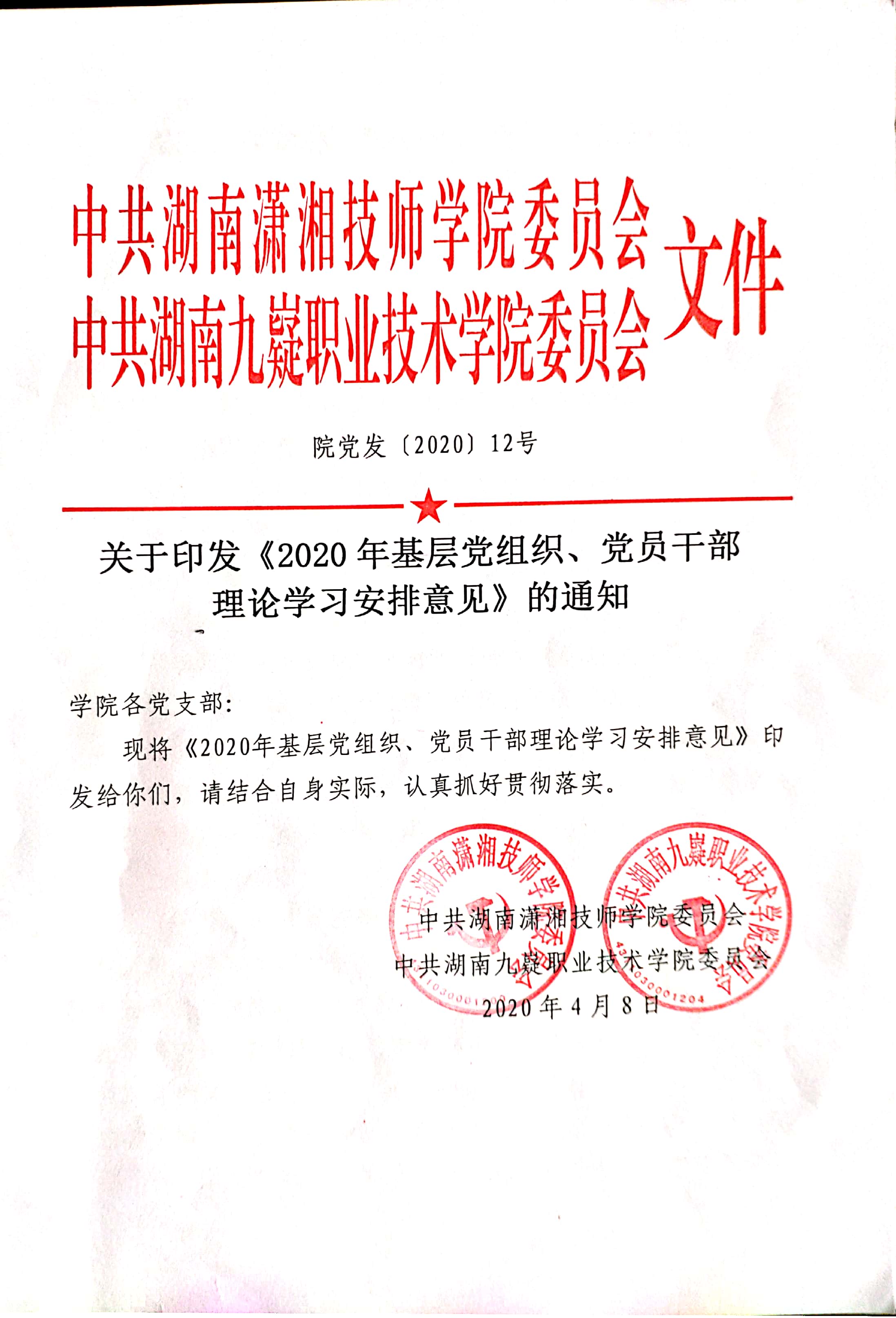 关于印发《2020年基层党组织、党员干部理论学习安排意见》的通知