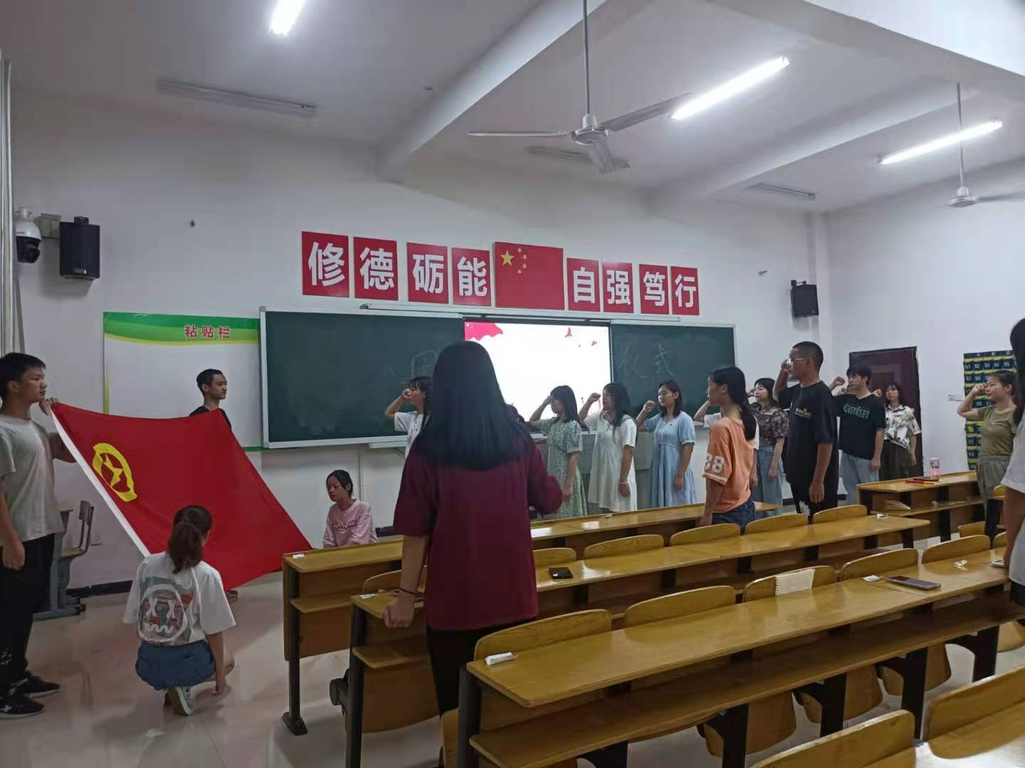 会议第三项:给新团员佩戴团章