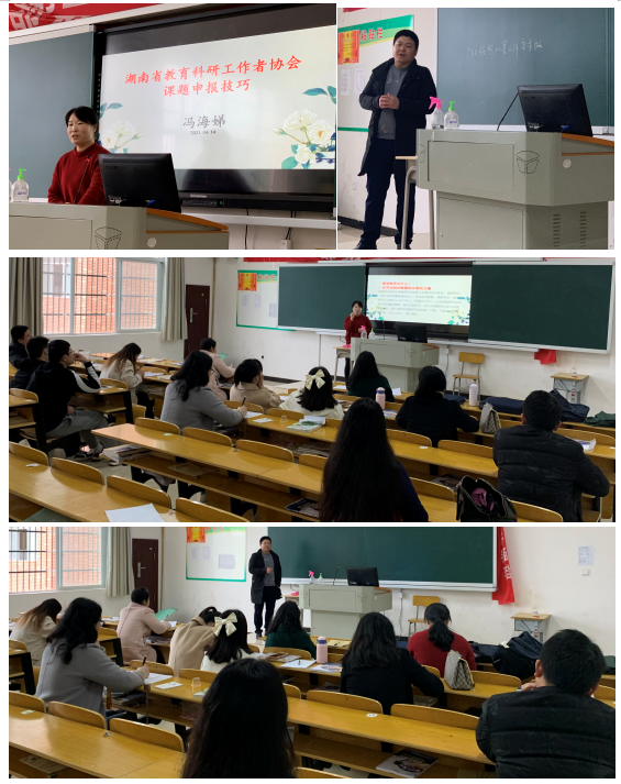 冯海娣老师的分享主题为《湖南省教育科研工作者协会课题申报技巧》。内容围绕着课题申报之前的注意事项、确定个人的研究方向、具体的研究课题、确定具体的研究课题以及课题立项申请书的分析讲解五大部分。冯海娣老师从自己的课题立项申请书的填写和个人经验出发,详细的对课题申报进行了非常有价值的经验分享,对每一位教师,特别是新进教师有着重要的参考意义。