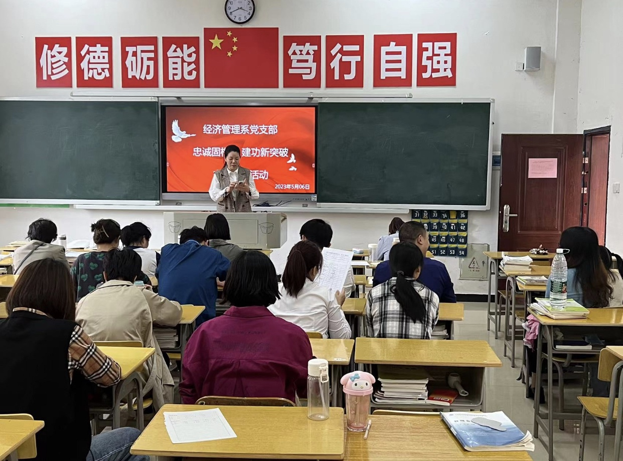 随后,支部书记陈素芬以“学深悟透重实践 凝心铸魂担使命”为主题为支部全体党员上党课,教育党员同志要用习近平新时代中国特色社会主义思想凝心铸魂,在积极投身中国式现代化实践中放飞青春梦想。她强调,要牢牢把握本次主题教育“学思想、强党性、重实践、建新功”总要求,圆满完成各项工作任务。支部的教师党员要不断加强科研教学能力,抓好人才培养、落实立德树人根本任务、坚定理想信念;青年学生们要牢记习近平总书记的殷殷嘱托,立志做有理想、敢担当、能吃苦、肯奋斗的新时代好青年。在实现中国梦的生动实践中,唱响青春之歌、书写人生华章。