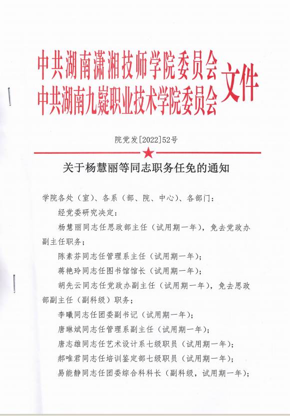 关于杨慧丽等同志职务任免的通知