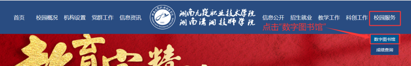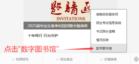 1、通过点击学校网站首页→校园服务栏→数字图书馆(https://mfindyzstsg.pub.chaoxing.com/#/Home),进入检索系统。