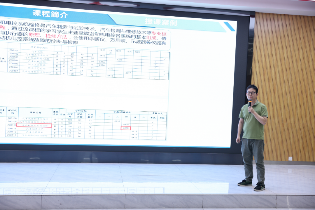 本次活动由马克思主义学院党支部书记、院长杨慧丽主持。公共课系教师冯海娣以《计算机专业英语》为例,系统阐释了"挖掘-融合-应用-评估"四维课程思政建设路径,其独创的"三维度评价体系"将知识目标、能力目标与价值目标有机统一。汽车工程系教师汪淼泉则通过《曲轴位置传感器及控制电路检修》实训课,展示了"一引领一主线六融入"特色模式:以习近平新时代中国特色社会主义思想为引领,以爱党爱国爱人民为主线,在六个教学模块中自然融入家国情怀、劳动精神等六大思政元素。