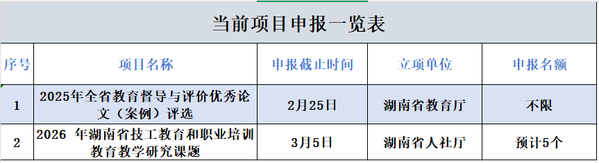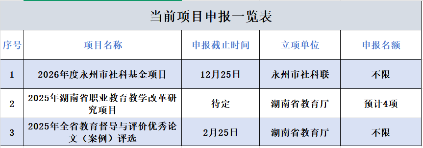 当前项目申报一览表