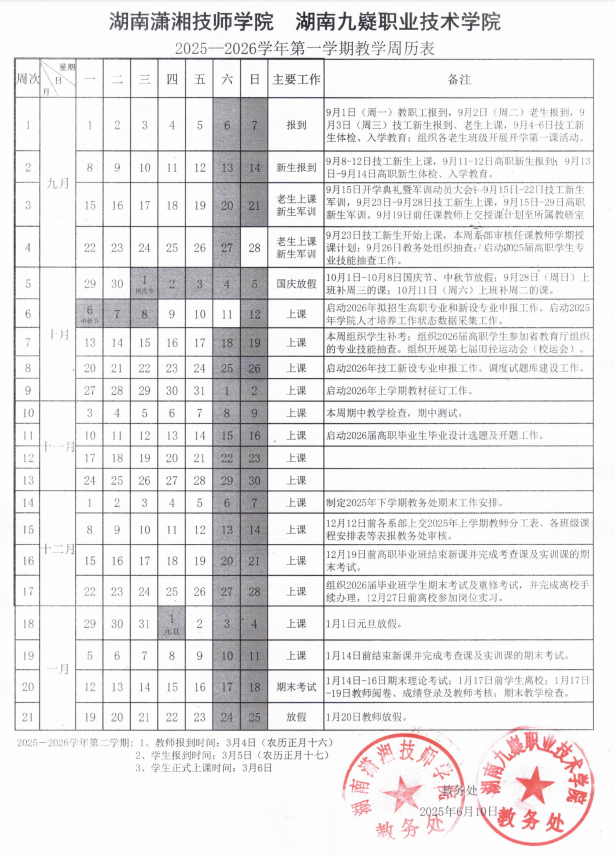 2025-2026学年第一学期教学周历表