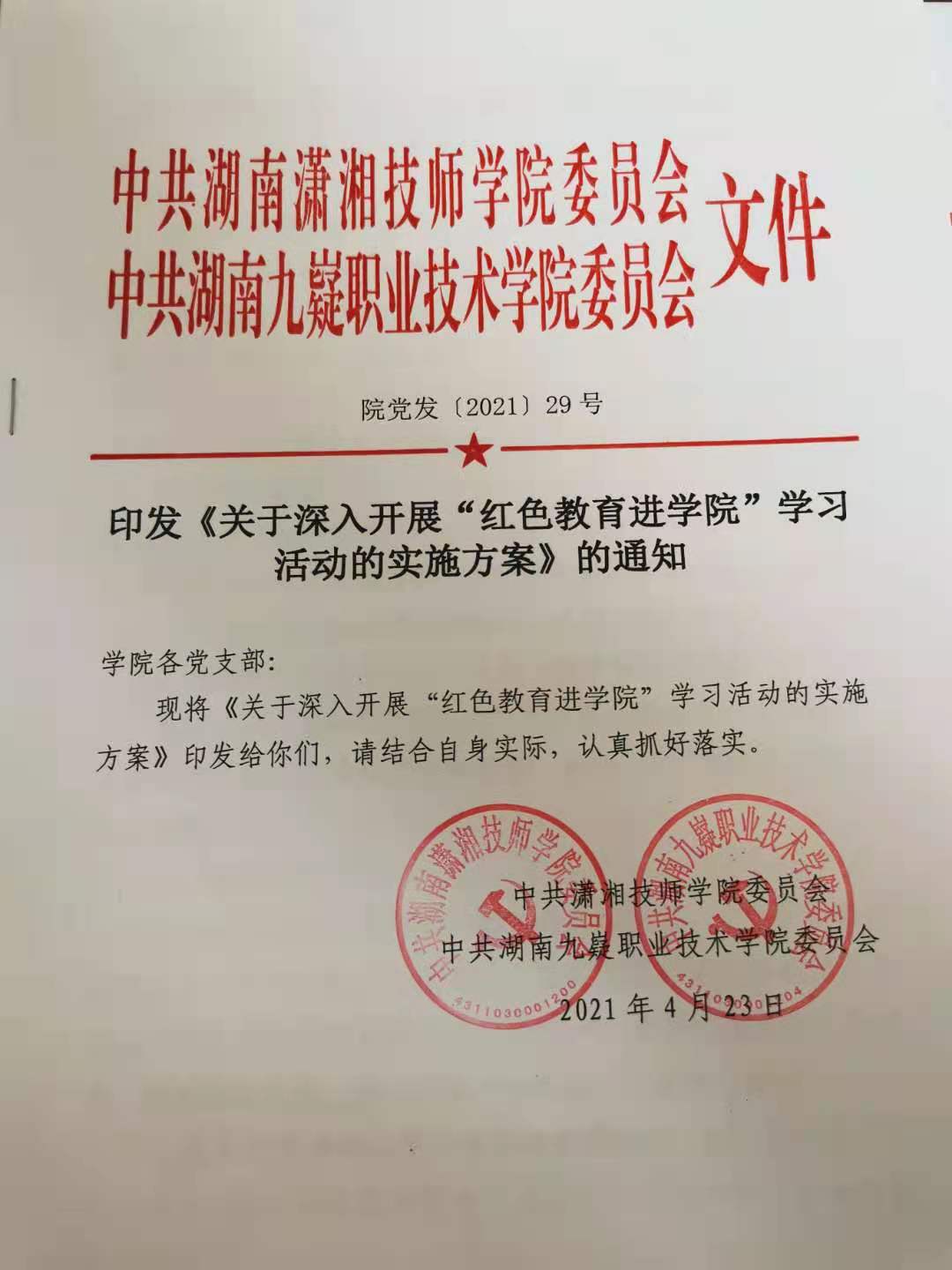 印发《关于深入开展“红色教育进学院”学习活动的实施方案》的通知