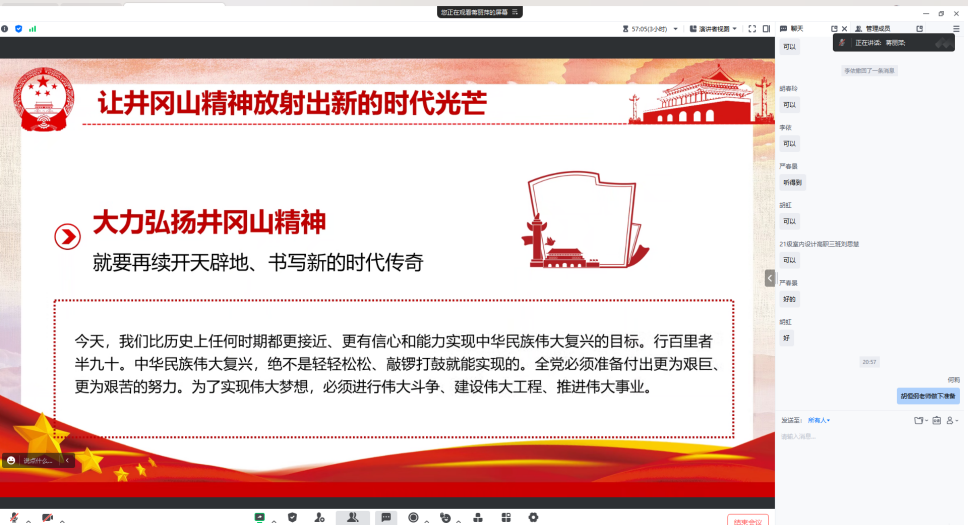 7月27日晚艺术设计系党支部在腾讯会议,开展了微型党课学习活动。党课学习主要由支部党员蒋丽萍、胡恒纲二名同志主讲。