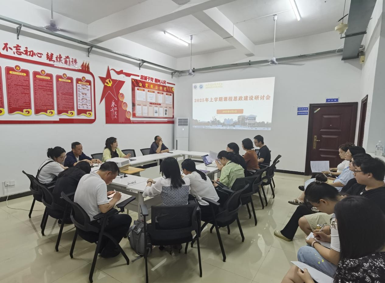 为深入贯彻立德树人根本任务,强化课程思政育人功能,推动“思政课程”与“课程思政”同向同行,6月3日下午,2025年上学期课程思政建设研讨会在马克思主义学院集体备课室顺利开展。学院教务处处长姚永辉、教学督导与教学质量管理中心主任唐少例、各教学系负责人、思政教师、专业教师代表参加此次会议,马克思主义学院党支部书记、院长杨慧丽主持会议。大家齐聚一堂,共探学科教学与思政教育深度融合的创新路径。