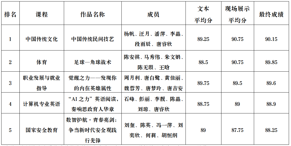 各团队最终成绩由资料评审成绩(占比40%)与现场展示成绩(占比60%)综合计算得出。评审结果如下: