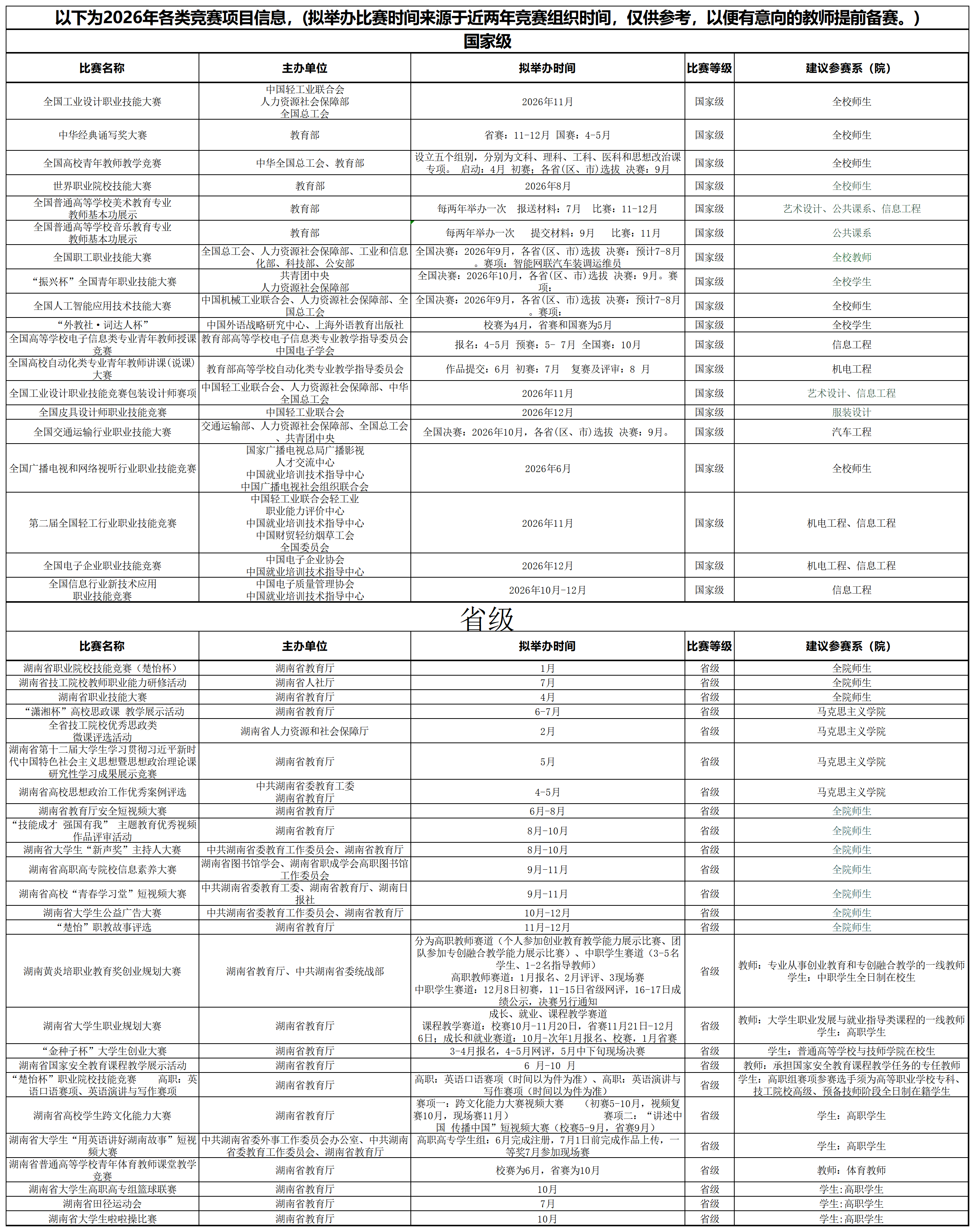 2026年各类竞赛项目信息
